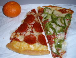 For lunch I had two pieces of pizza and a clementine. Ben ordered pizza for dinner last night and I was lucky enough to find a couple of pieces in the refrigerator this morning to bring for lunch! One piece was green pepper and the other was pepperoni. A good combo! The clementine really hit the spot after the pizza.