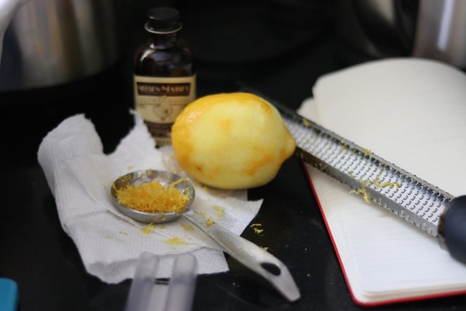 But still, I always clean up as I go and put away ingredients once I am finished with them… so I’m never left with a complete mess. It’s always fun to try and keep my notebook clean of messy ingredients!